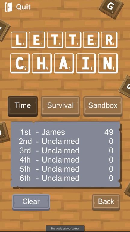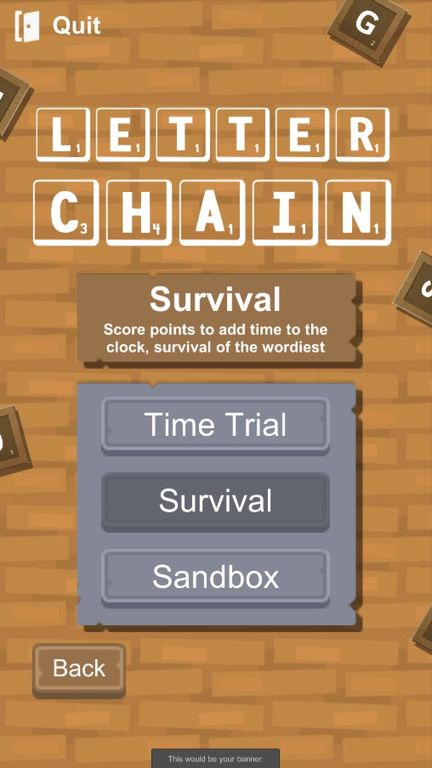 Letter Chain is a word-based puzzle game where you must join together letters to create words and score points. Presented with a grid of letter tiles the user can tap or drag their finger to swap tiles and form chains. The app features three core games modes, Time Trail where the player must aim to get the highest score possible before the time runs out. Free play, where there is no time limit and players can chain letters at their own pace, potentially discovering words you never knew existed. And Survival, where players must score words to keep their timer above zero and stay in the game as long as possible.