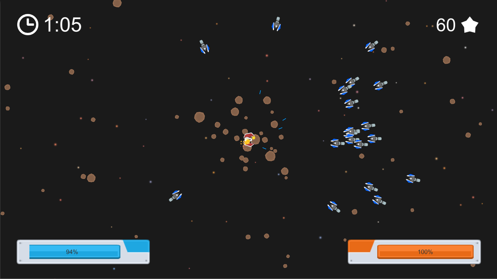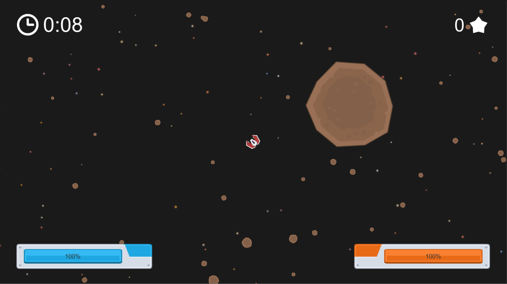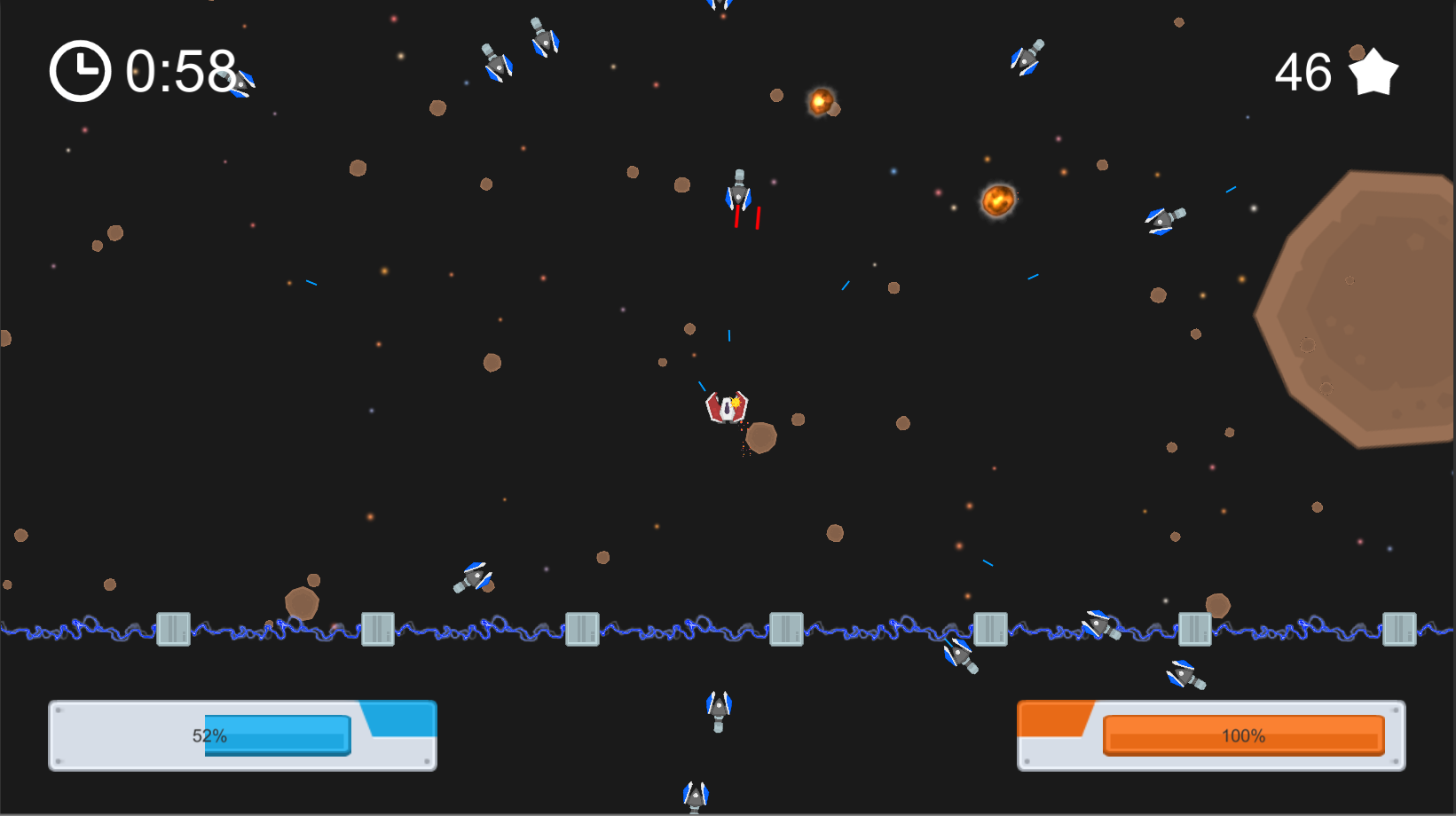 Enemies will attempt to orbit the play and cut them off from flying away by surrounding them. Spread around te map are asteroids that the player can use for a temporary withdrawal from enemy fire, by these safe havens don’t last for long.